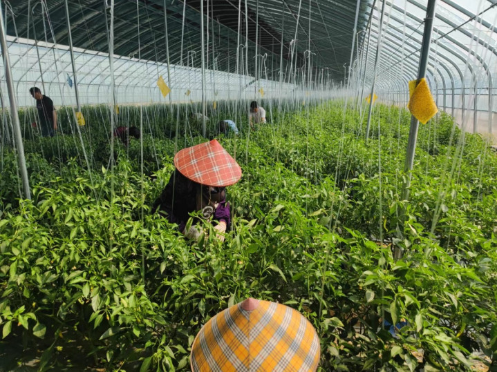 在寿光技术专家指导下,今年“共富合伙人”种植的衢白椒依托大棚保温效果,提前定植、错峰上市,抢占高价窗口期,教会了技术、带来了产量。